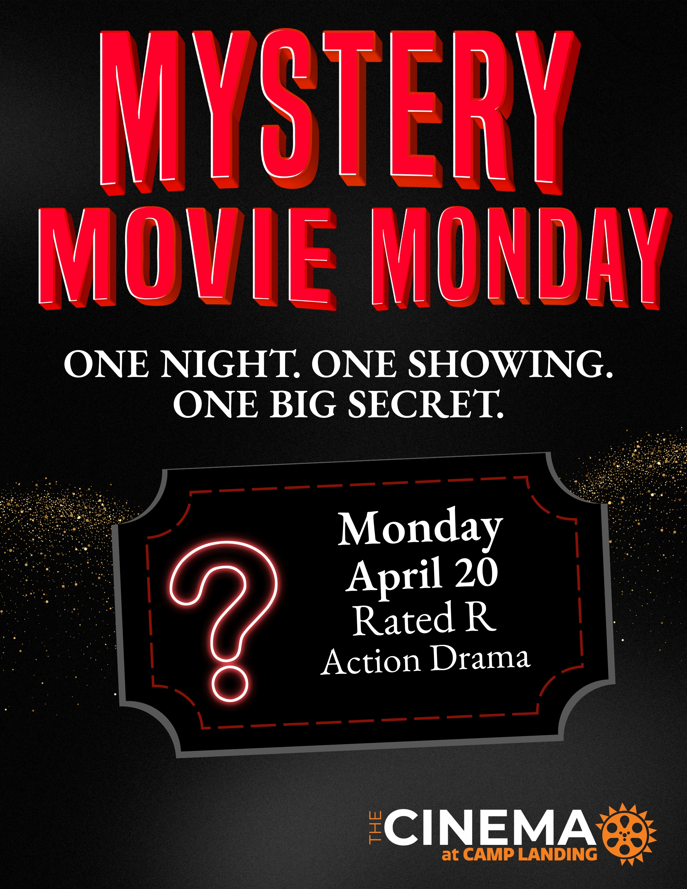 Get your tickets now at CinemaCampLanding.com or LegacyTheaters.comAction/DramaPT1H40MR2026-04-06Mystery Movie Monday 04/20"Mystery Movie Monday 04/20"Showtimes